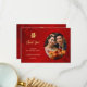 Este elegante cartões de agradecimentos de casamento chinês apresenta uma foto personalizada em um círculo, um símbolo de felicidade do ouro artístico e uma manchete em um moderno roteiro manuscrito sobre um fundo vermelho brilhante.
