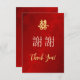 Este cartões de agradecimentos de casamento chinês em cores tradicionais mostra um símbolo de dupla felicidade de ouro artístico em um fundo vermelho rubi, o obrigado chinês tradicional você fala e o obrigado inglês você fala em um elegante e moderno roteiro escrito à mão. Papelaria de casamento e outros produtos disponíveis.