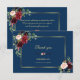 Cartão De Agradecimento Casamento com Moldura Dourada Floral Azul Marinho