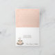 Pressione sua alegria e obrigados com um amor latte com este café doce e bonito, que tem o tema noiva e casal, obrigado a anotar cartas em tons de creme, marrom, pincel e prata com uma xícara de café que pode ser monograma com as iniciais da noiva e do noivo em seu design cor-de-rosa branco e cor-de-pêssego. Esta xícara de joe a vapor num pires com uma colher sobre ela tem um coração de espuma flutuando nele. A parte superior do dentro da placa tem um padrão cardíaco branco, rosa e bolinhas branco. Trabalho de arte © Chrissy H. Studios, LLC. Todos os direitos reservados.