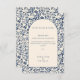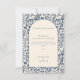 Apresentando uma bela fronteira floral vintage em azul profundo em um fundo de creme suave, este cartão captura o charme de eterno do seu dia especial. O sofisticado design oferece uma maneira clássica e atenciosa de dizer obrigado pela sua presença, presentes e apoio no dia do seu casamento. Perfeito para os casais que procuram adicionar um toque de elegância e tradição à sua papelaria de casamento, este cartão é uma marca significativa que os seus hóspedes irão apreciar.