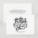 Um cartão de agradecimento de casamento bonito com caligrafia ornamentada rodeada por elementos simples ornamentais e seus nomes e data de casamento em uma fonte moderna minimalista simples.
