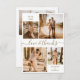 Ouro elegante e minimalista e cartões de agradecimentos de casamento personalizado com a mão branca e colagem fotográfica. modelo de cartões de agradecimentos de casamento com quatro (4) fotos na frente e uma (1) foto no verso. Com o texto "Amor e obrigados" em um robusto guiado de letras tipográficas, o script de fontes swash tail em cores douradas em fundo branco. Personalize seu nome e obrigado da mensagem. Se preferir escrever manualmente a sua nota, basta eliminar o texto de amostra para obter mais espaço.