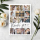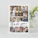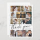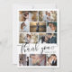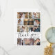 Cartões de agradecimentos de Casamento de Colagem de Fotos Moderno e elegante. Design apresenta 10 fotos, script de tipografia ''obrigado você'', nomes, data de casamento na frente e sua mensagem no verso.
