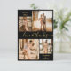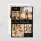 Elegante, moderno, minimalista preto e dourado manuscrito foto colagem personalizada cartões de agradecimentos de casamento. modelo de cartões de agradecimentos de casamento com quatro (4) fotos na frente e uma (1) foto no verso. Com o texto "Amor e obrigados" em um guião cursivo, escrito à mão, de letras maiúsculas e minúsculas, com letra maiúscula em fundo preto. Personalize seu nome e obrigado da mensagem. Se preferir escrever manualmente a sua nota, basta eliminar o texto de amostra para obter mais espaço.
