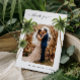 Mostre gratidão com estes cartões modernos e elegantes, com palmeiras de aquarela, sua foto e texto personalizados. Adicione facilmente seus detalhes clicando na opção "personalizar".