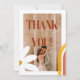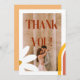 Um cartões de agradecimentos casamento vintage divertido e caprichoso com a sua fotografia com flores de rancho, um arco-íris e um texto retrô que diz "Obrigado!". Tipografia laranja. A mensagem na parte traseira pode ser editada ou excluída (se você quiser escrever as cartas manualmente em vez disso). #retro #casamento