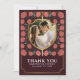 Expresse sua gratidão com charme medieval! Estes cartões de agradecimento de casamento apresentam sua dentro fotográfica em forma de escudo, cercada por intrincados florais cor-de-rosa contra um fundo magenta escuro. Uma maneira única e elegante de dizer "obrigado" aos seus entes queridos! Personalize o texto, a fonte e as cores para se adequarem às suas preferências de design. Correspondência de Itens em nosso compro para um tema completo de festa. NOTA: O ouro apresentado nesta rubrica NÃO é folha de alumínio real.