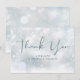 Flocos de neve suaves caem sobre a mensagem de agradecimento do seu casamento definida em um fundo mágico de inverno. Este cartão de agradecimento de casamento chique pode ser personalizado com sua mensagem especial de agradecimento e nomes. Você pode personalizar com sua própria mensagem de agradecimento no verso ou excluir o texto se preferir deixá-lo em branco. Uma maneira perfeita de dizer obrigado! Projetado por Thisisnotme