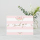 Cartão De Agradecimento Casamento de Flores de Stripes Rosa Obrigado