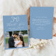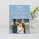 Expresse sua gratidão com este cartões de agradecimentos de casamento com fotos na moda com um arco desenhado à mão e "Obrigado" em elegante caligrafia branca contra um fundo azul macio. Personalize com seus nomes e data de casamento acima de sua foto de casamento horizontal favorita para criar uma lembrança duradoura. A parte de trás da carta oferece espaço para sua nota pessoal de obrigados, permitindo que você compartilhe uma apreciação sincera com a família e os amigos. A nova paleta azul e branca faz desta design uma ajustado perfeita para a estacionaria de casamento moderna, romântica ou costeira.