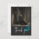 Este design de cartões de agradecimentos de casamento apresenta um tema escuro e meloso que é simples, mas atordoante. Um fundo negro de carvão negro é a canvas perfeita para sua foto de casamento. Uma mariposa azul-teal, suas asas se espalham, está empoleirada no canto. Único e elegante, este design pode ser usado em qualquer estação. Criado pela imprensa simplesmente de farmácia.