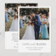 Cartões de agradecimentos de casamento moderno com um simples design minimalista em preto clássico e branco. Abaixo, sua foto está seu "Amor e Obrigados" com a palavra "e" em uma tipografia elegante com seu nome e casamento. A parte de trás tem uma segunda fotografia e o seu obrigado pessoal envia uma mensagem.