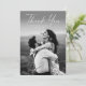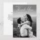Casamento de foto com script elegante e sofisticado cartão de agradecimento moderno. Parte de uma coleção de casamento. As cores podem ser alteradas. A parte traseira inclui uma mensagem genérica de agradecimento que você pode personalizar para cada convidado ou removê-la completamente se preferir escrever à mão seu agradecimento.