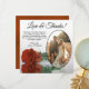Estes belos cartões de agradecimento de casamento são uma maneira maravilhosa de mostrar seu apreço aos seus amigos e família por celebrar com você no seu dia especial. Eles apresentam a sua foto de casamento em uma moldura oval com um solteiro de cor laranja rajada ou cinzenta queimada, deitado de lado, refletindo na água. O título diz "Obrigados e amor" com espaço para uma nota e assinatura personalizadas. Clássico, romântico e sofisticado, estas cartas são a forma perfeita de concluir a sua celebração de casamento.