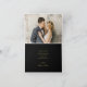 Este elegante cartões de agradecimentos personalizado de casamento contém as palavras "Obrigado" com seu nome e data de casamento em ouro falso, bordado por um quadro de ouro em um simples fundo preto. A dentro do cartão tem a sua fotografia personalizada com uma mensagem e uma assinatura. Parabéns pelo seu casamento e pelos melhores votos para o futuro! Desenhada por Susan Coffey.