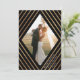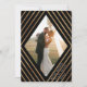 Este belo casamento Obrigado Cartões planos apresentam faixas de folha de ouro na moda faux, criando uma estrutura em forma de diamante geométrico em volta da sua foto. A cor de fundo é preto puro. Modelos de texto são incluídos no verso para mais personalização.
