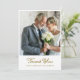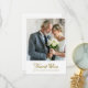 Obrigado os seus entes queridos com este cartão com fotos maravilhosamente simples, com um roteiro elegante e um quadro branco limpo. O design coloca seu momento de casamento favorito na frente e no centro, com espaço abaixo para seus nomes e um obrigado gracioso para sua mensagem. Uma maneira perfeita de enviar amor e apreço após seu grande dia.