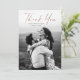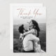 Foto de casamento com o moderno Rosa do Roteiro Dourado, elegante cartões de agradecimentos moderno. A parte traseira inclui uma mensagem de obrigado que você pode personalizar para cada convidado ou remover se você preferir escrever seu obrigado manualmente.