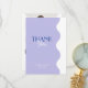 Expresse sua gratidão com um toque de elegância e talento moderno com nosso casamento personalizado, obrigado cartas. Cada placa apresenta uma charmosa borda escaldante de onda de lavanda, adicionando um toque artístico suave ao design. A frente da carta ostenta um estilo de tipografia lúdico e contemporâneo que mistura diversão e sofisticação. As palavras selecionadas são destacadas em uma cor azul brilhante, fornecendo um pop vibrante que captura o olho e adiciona um toque pessoal único. Do outro lado há uma foto e uma mensagem que podem ser personalizadas.