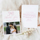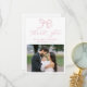 Expresse suas obrigados com este cartões de agradecimentos romântico de casamento fotográfico com um arco rosa-rosa e "Obrigado" desenhado à mão em uma caligrafia graciosa sobre um fundo branco. Personalize com seus nomes e data de casamento acima de sua foto de casamento horizontal favorita para uma manutenção significativa. A parte de trás do cartão oferece espaço para seu obrigado pessoal que você envia, ajudando você a compartilhar uma apreciação sincera com a família e os amigos. Com seus sotaques cor-de-rosa rosa, este design é perfeito para estilos de casamento românticos, femininos ou de primavera.