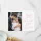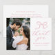 Envie obrigados incríveis com este cartões de agradecimentos romântico de casamento, com sua foto vertical de casamento à esquerda e um arco rosa rosa com desenho manual, com "Obrigado" em uma caligrafia rosa graciosa à direita, contra um fundo branco. Personalize com seus nomes e data de casamento para uma lembrança duradoura. A parte de trás do cartão inclui espaço para a sua mensagem de obrigado, ajudando-o a compartilhar uma verdadeira gratidão com os entes queridos. Os sotaques cor-de-rosa rosa fazem desta design uma bela escolha para casamentos românticos, femininos ou de primavera.