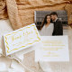Obrigado seus amigos e família em estilo com este cartões de agradecimentos de casamento com fotos do Quadro de Onda Amarelo Moderno! O design exibe "Obrigado" em um script amarelo manuscrito cercado por uma borda ondulada amarela contrastando com um fundo branco. Personalize a frente do cartão com seu nome e data do casamento. A dentro do cartão apresenta sua foto horizontal de casamento no topo com sua mensagem personalizada mostrada abaixo em letras amarelas em negrito. O cartões de agradecimentos de casamento retrô foi projetado para coordenar com nossa coleção de casamento do Modern Wavy Frame.