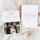 Envie obrigados incríveis com este gracioso cartões de agradecimentos de casamento fotográfico com uma arco desenhada à mão e "Obrigado" em caligrafia de lavanda mole em fundo branco. Adicione seus nomes e data de casamento acima de sua foto horizontal de casamento para uma manutenção que captura seu dia especial. A parte traseira do cartão inclui espaço para o seu obrigado pessoal, a mensagem que você envia, permitindo que você compartilhe uma verdadeira gratidão com a família e os amigos. Com seus gentis sotaques de lavanda, essa design é perfeita para casamentos românticos, caprichosos ou de primavera.