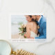Este simples modelo de cartões de agradecimentos de casamento de fotos na moda, apresenta seus nomes e data de casamento na parte inferior da sua foto, juntamente com 'LOVE & OBRIGADO destacado em todas as letras maiúsculas. A cor padrão do texto na frente é um preto ligeiramente suavizado. Escolhemos os cantos nítidos padrão como a forma padrão, mas você pode facilmente mudar isso para cantos arredondados, pois essa aparência também funciona muito bem com esta design. Então, verifique os dois estilos e veja qual deles te agarra! Adicionamos uma camada branca semitransparente na parte inferior da placa que dá a esta placa um toque exclusivo. Ele permite que a parte inferior da sua foto permaneça um pouco visível e, ao mesmo tempo, garante que o texto se destaque independentemente da foto que você usar. Isso dá uma sensação de fluidez, assim como um toque prático à design, que acrescenta seu charme e calor simples e contemporâneos. Você pode optar por alterar a fonte, a pontuação ou a cor usada para vários elementos de texto deste design na frente e/ou no verso. Por exemplo, você pode escolher alterar a cor do texto 'LOVE & OBRIGADOS. O plano de fundo padrão no verso é definido como transparente para permitir que a cor do papel sirva simplesmente como o tom base. Mas você pode facilmente mudar isso selecionando uma das cores básicas nas ferramentas de edição, inserindo outro número de cor no lugar da nossa, se você tiver uma matiz específica em sua pesquisa, ou olhando para a ferramenta do espectro de cores e escolhendo algo à vista. Colocamos algum texto de marcador de posição no verso para que você exclua e substitua por sua própria mensagem, com ou sem seus nomes, se você quiser assinar manualmente quando receber os cartões. Mas você pode simplesmente optar por excluir nosso texto de marcador de posição e deixar o vazio de trás completamente para que você possa escrever uma mensagem manualmente em cada cartão e assinar seus nomes. O tipo de papel padrão, matte, tem um calor suave e resiste a manobras, então é uma escolha excelente para escrevendo sua própria mensagem. Em vez disso, você pode editar isso e escolher semirdano ou outro tipo de papel. Em qualquer caso, lembre-se de que há um texto de marcador de posição também no verso e apague todo o nosso texto de amostra/marcador de posição em ambos os lados do cartão! Escolhemos uma cinza escura para o texto na parte de trás, mas você pode mudar a cor e/ou a fonte de acordo com o seu estilo. Você também pode optar por usar uma combinação de preferencialmentes de maiúsculas e minúsculas que o formato de maiúsculas mostrado. Use as ferramentas intuitivas de design, sua foto favorita e sua inspiração para fazer esse cartões de agradecimentos moderno de casamento chique exclusivamente seu. Temos uma seleção de outro casamento minimalista moderno, cartas de agradecimento em vários formatos, então, por favor, procurem mais ideias na nossa loja!
