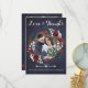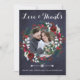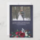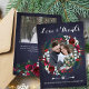 Obrigado de casamento da caserna russa de inverno você cartão com fotos com rosas brancos e vermelhos de coloração aquática de cor branca e vermelha, flores e coroa de flores com galhos de abeto verde caçador de pinheiros sazonais e bagas ocas sobre fundo de quadro negro de marinho.+++++ Personalize com duas fotos, com sua assinatura e texto em ambos os lados! +++++++++++++ Uma forma elegante de dar obrigados e enviar amor para um casamento de Natal de inverno ou enviar saudações como um casal de recém-casados.