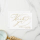 Envie um cartão de agradecimento minimalista personalizado para os seus convidados de casamento para agradecê-los. Este design simples apresenta um elegante grafismo falso dourado manuscrito que diz "Obrigado" junto com o seu nome para personalizar. O verso do cartão tem uma mensagem personalizada junto com a sua assinatura. Desenhado por Susan Coffey.