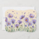 Flores silvestres de cor d'água roxas deliciosas dançam através de um papel macio, azul-lavanda, estilo francês, criando uma estética sonhadora e romântica. Perfeito para um casamento na primavera, este elegante design captura a essência de jardins florescentes e amor eterno. A sutil textura do papel melhora os detalhes florais pintados manualmente, fazer uma excelente escolha para uma celebração refinada e graciosa.