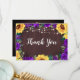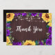Estes cartões de agradecimento apresentam um girassol de cor d'água e design de borda floral rosa púrpura com luzes de cordas e madeira. Personalize-o com seu próprio obrigado, você envia uma mensagem no verso. Produtos de casamento correspondentes disponíveis.