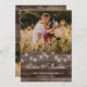 Expresse suas obrigados com este cartões de agradecimentos de casamento de pedras rústicas. O design apresenta luzes de cordas de jarro de pedras em um fundo de madeira de celeiro rústico. Personalize com duas fotos, seus nomes e mensagem pessoal.