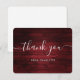 Cartão de agradecimento vermelho rústico com uma madeira rústica e uma fonte de letra moderna. Personalize facilmente este cartão de agradecimento para um casamento, chá de noiva, aniversário ou outra ocasião.