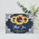 Cartão De Agradecimento Casamento de Marinho azul de madeira de girassol r