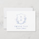 As iniciais monogramadas, emolduradas por folhas botânicas elegantes, ilustradas à mão, estavam cortadas em azul e branco, simples e sofisticadas. Excelente obrigado cartas para o casamento clássico moderno, casamento formal simples, casamento elegante de jardim botânico. Veja todas as peças correspondentes na coleção.