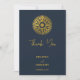 Um design de passaporte de casamento de destino azul marinho com bússola dourada e elementos viagem. Este design é ideal para todos os casamentos de Primavera, Verão, outono e inverno. Um elegante design de viagem de casamento azul e dourado com layout de passaporte, mapa mundial e foto de casal personalizada. Um obrigado de casamento de destino moderno você design com elementos elegantes. Os convites de casamento e outros artigos de papelaria também estão disponíveis.
