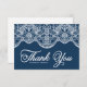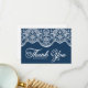 Cartão De Agradecimento Casamento de Renda Botânica Elegante em Azul