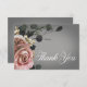 Incômodo em elegância eterno com este belo cartões de agradecimentos de casamento. A borda floral mais realística, adornada com rosas brancas e pinceladas, peonias, e delicadas flores, cria uma atmosfera romântica e sofisticada. O fundo médio das cinzas, destacado por um borrão transparente branco suave, adiciona um toque de beleza etérea. O elegante texto branco, enquadrado pela borda floral, completa esse design clássico e eterno. Esta design é a escolha perfeita para um casal que procura uma sofisticada e inesquecível celebração de casamento. Criado pela imprensa simplesmente de farmácia.
