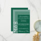 Simples cartão de cerimônia de casamento de guião chic moderno para acomodações, noivas que estão adorando suas cerimônias em um estilo moderno e cor verde esmeralda. A suíte de casamento chic tem uma fonte branca moderna com monograma de iniciais ao lado.
