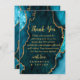 Cartão De Agradecimento Casamento de Téal Blue e Agate Marble Dourado