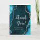 Cartão De Agradecimento Casamento de Téal Blue e Silver Agate Marble