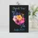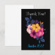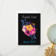Obrigado seus convidados por compartilhar em seu grande dia com este design vibrante e elegante. Coloque sobre um fundo escuro para mostrar a vibração do design floral. Todas as fontes e textos podem ser personalizados. As cores de fundo e fonte também podem ser personalizadas. A parte traseira da carta é vazio de sentimentos escritos à mão.