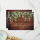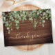 Mande embora. Obrigado, anotações para seus amigos e família do seu casamento com esta madeira rústica com eucalipto verde, cartões modernos de agradecimento. Este casamento rústico agradece as cartas que contêm folhas elegantes de eucalipto verde, guião de ouro delicado na madeira do condado. Personalize este casamento. Obrigado, cartas com sua mensagem pessoal. Este casamento verde único, obrigado, cartões, fará uma impressão duradoura, seus convidados, família e amigos! COPYRIGHT © 2020 Judy Burrows, Black Dog Art - Todos Os Direitos Reservados. Cartões de agradecimentos de Casamento de Script Dourado Eucalyptus, Verso Russo
