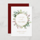 Este cartões de agradecimentos apresenta uma coloração aquosa pintada de eucalipto, folhas verdes, bagas vermelhas, ramificações de pínus, e uma falso estrutura em círculo dourado com fundo vermelho no verso. Para personalização mais avançada deste design, clique no link "Personalizar mais". Itens correspondentes também estão disponíveis.