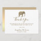 Cartões de agradecimentos de casamento simples, elegante e branco com elefante monograma de folha de ouro - símbolo de amor, fertilidade e boa sorte.