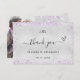 Cartão De Agradecimento Casamento elegante com foto roxa prateada