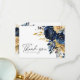 Cartão De Agradecimento Casamento Floral Dourado marinho Azul