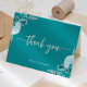 Cartão De Agradecimento Casamento Floral em Turquesa e Prata com Letra